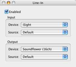 If all goes well, you should now be getting the iSight signal with proper gain setting into the device you selected as output device in LineIn.