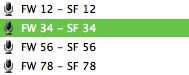 The naming scheme is basically: FW (firewire device input) 34 (channels 3 and 4) - SF (Soundflower device output) 34 (channels 3 and 4).