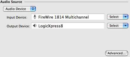 Audio Hijack Pro is then used to Hijack the actual inputs from the FireWire 1814 and route them to the corresponding channels on the ‘LogicXpress8’ device.